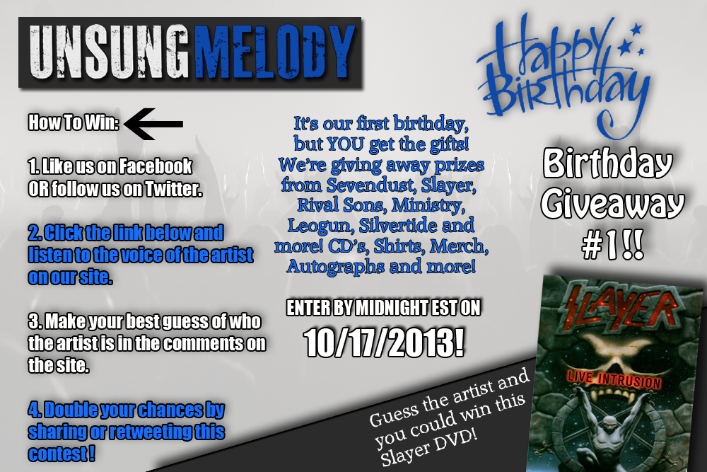 Listen to the voice below and put your best guess in the comments by midnight on October 17th. One lucky winner will win a Slayer DVD! Don’t forget, you can double your chances of winning by sharing the contest on Facebook or Twitter!