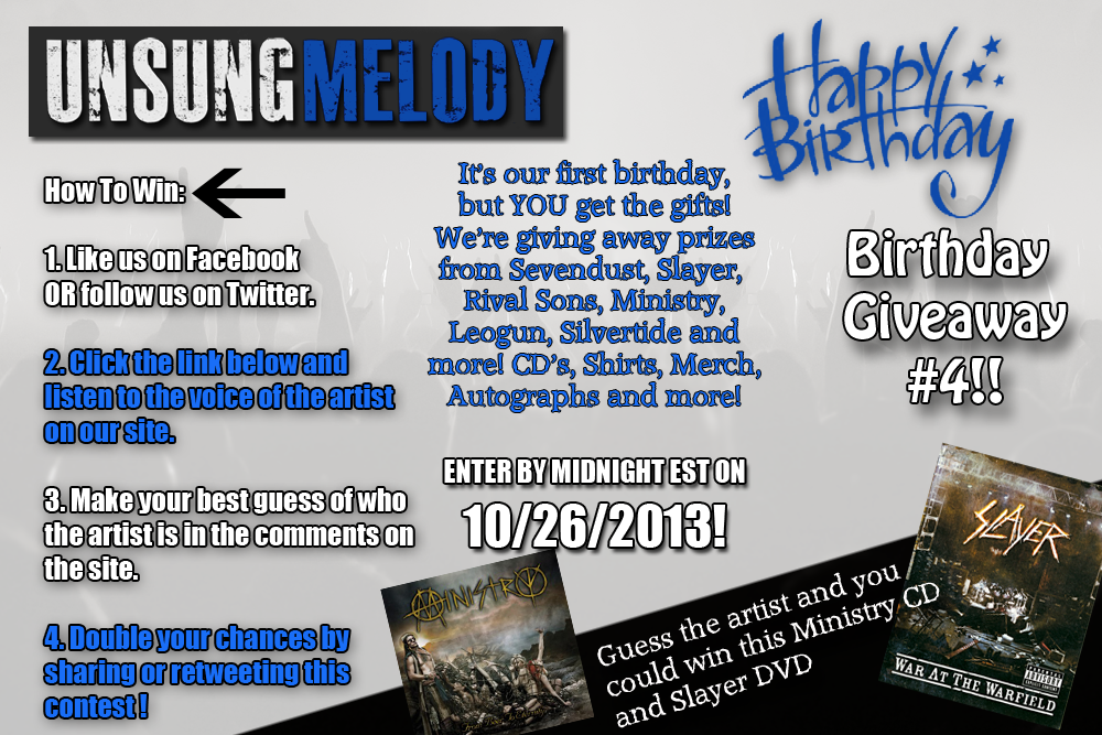 Listen to the voice below and put your best guess in the comments by midnight on October 26th. One lucky winner will win the new Ministry CD titled From Beer To Eternity AND the Slayer DVD War At The Warfield! Don’t forget, you can double your chances of winning by sharing the contest on Facebook or Twitter!