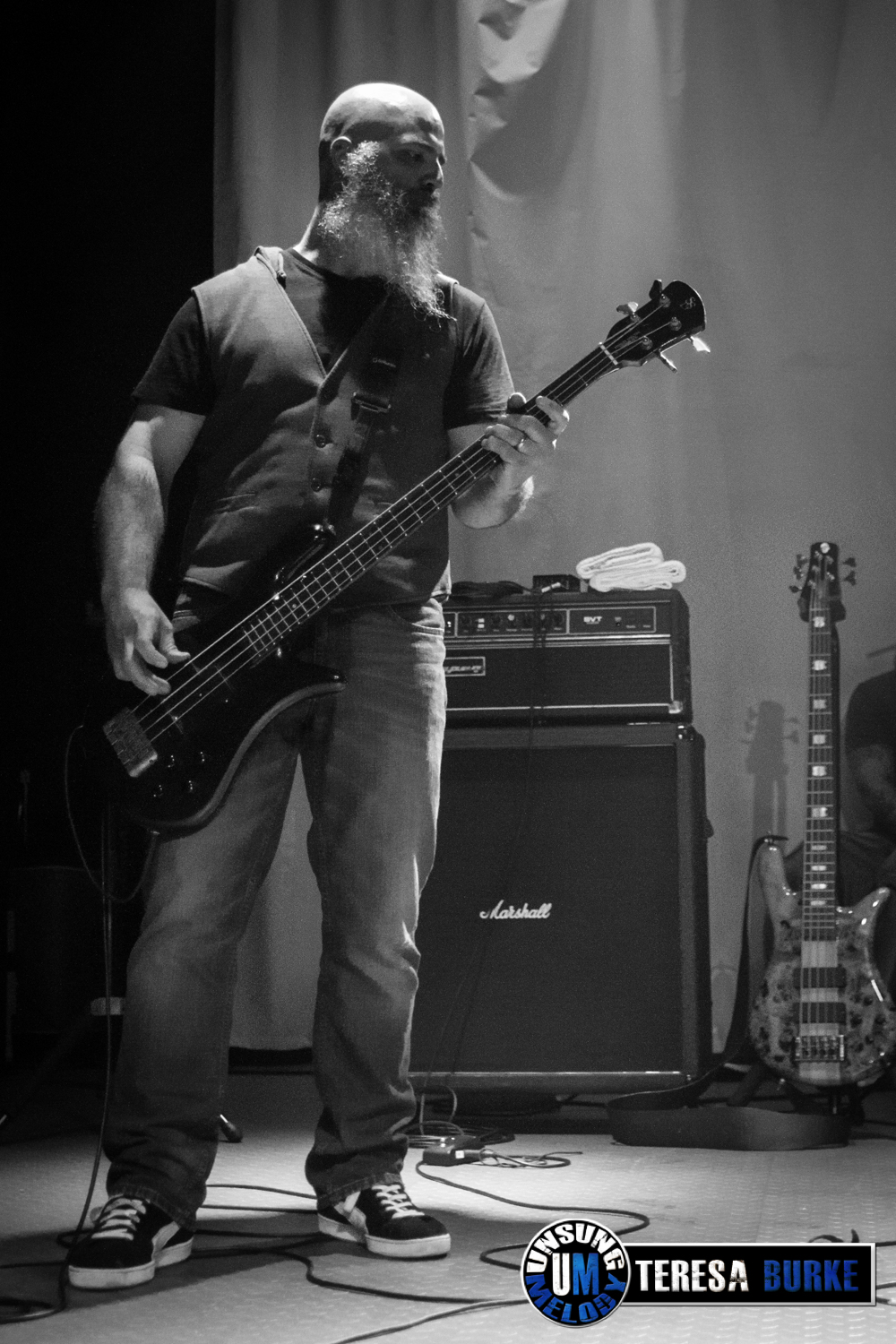 Off and on during the night, to me, Travis appeared like an eccentric musical madman as he would pace back and forth in front of his three guitars. I assumed he was trying to decide which tuning would be best for the next song. (Note: Since the posting of this review, it was pointed out that Travis’ guitars were most likely lined up incorrectly which conflicted with his set list numbering.) As a result, the guitar tech was often seen squatting down next to the guitars, waiting to see which one Travis would use so he could take the one just played to check the tuning. It was sometimes distracting, but I guess it was a necessary evil. All in the name of Rock n’ Roll, right?