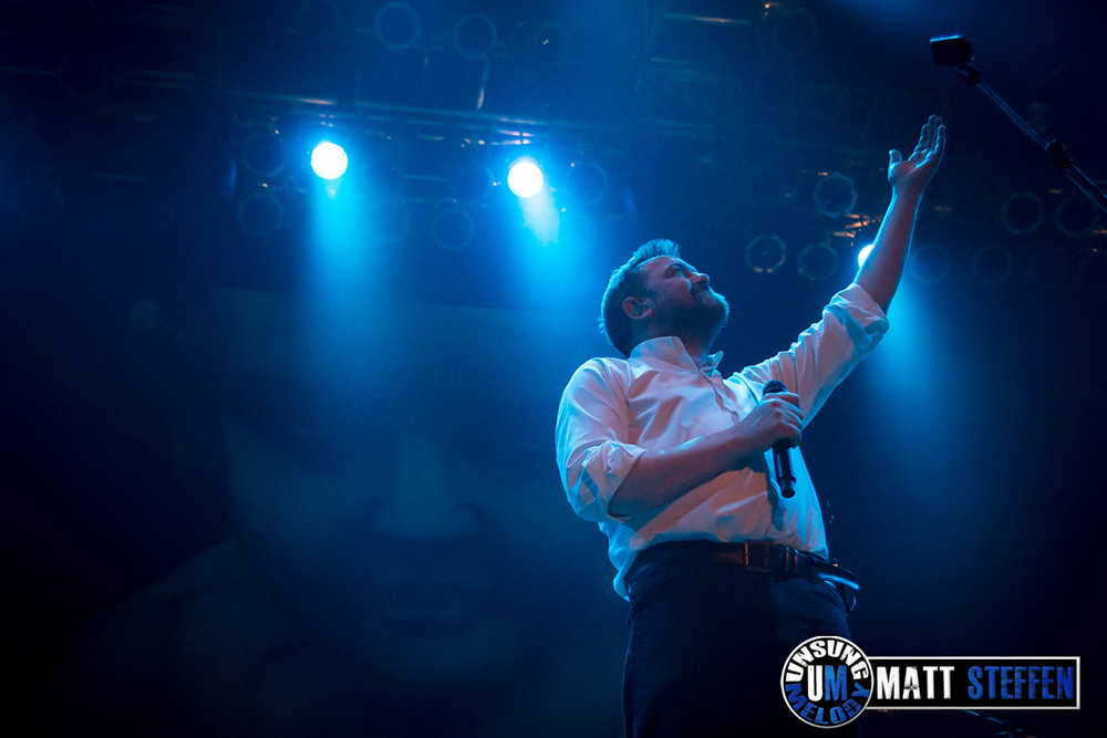 After a short intermission, Elbow took the stage at 9pm sharp. When you read anything about Elbow, it usually centers on frontman Guy Garvey and mentions the “rest of the boys” in glancing blows, if at all. As the show began, it was not hard to see why. Four very capable and talented musicians took their places in the shadows and got down to business while Guy stood on the lip of the stage, arms outstretched, raising a drink to the crowd. And this is how things continued the entire set.