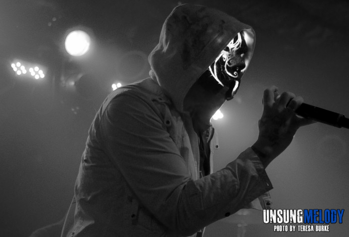 Exactly one week after the release of Hollywood Undead’s new album, Notes From the Underground, what they were calling The Underground Tour, made a stop at Chicago’s Bottom Lounge on January 15. If you have never seen Hollywood Undead before, you’re in for a fun ride. Not only is this music a combination of hip hop and rock, each band member has his own trademark mask, which happened to be brand new for this tour. On top of that, at some point or another during the night, each band member had his turn on vocals and other band members also traded off playing various instruments. Hollywood Undead kept their show going non-stop and there was always something to pay attention to on stage.