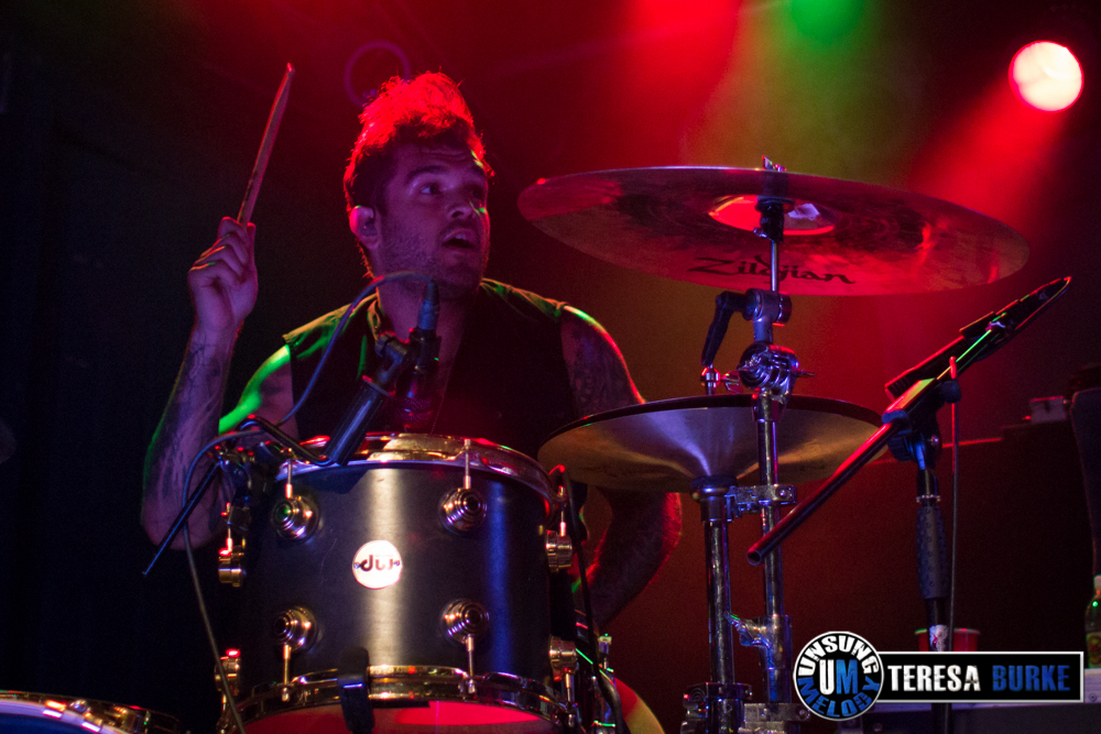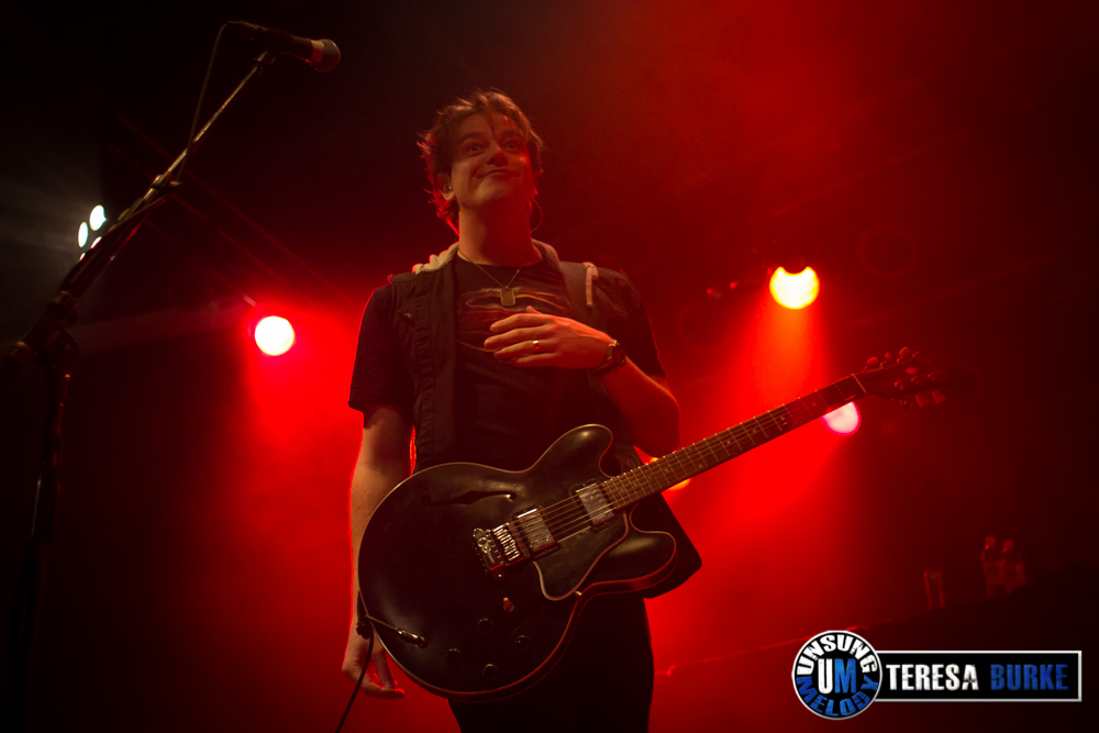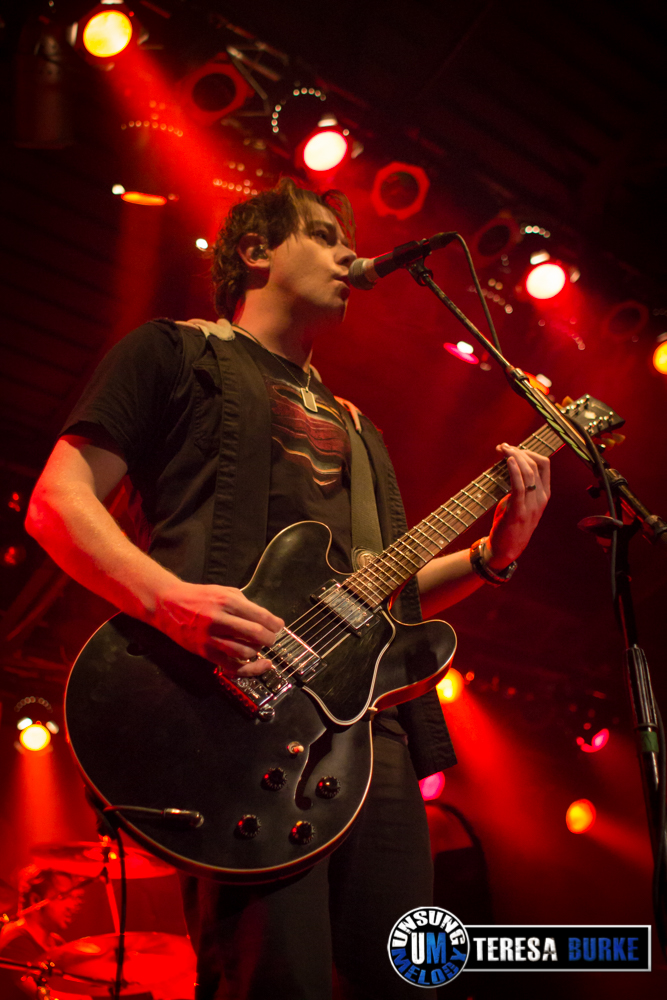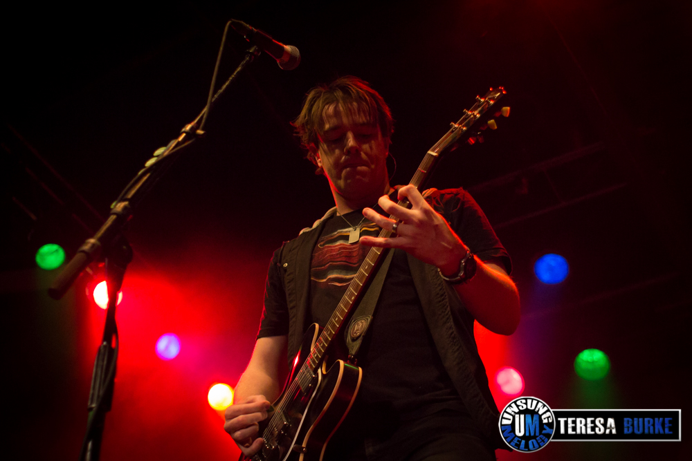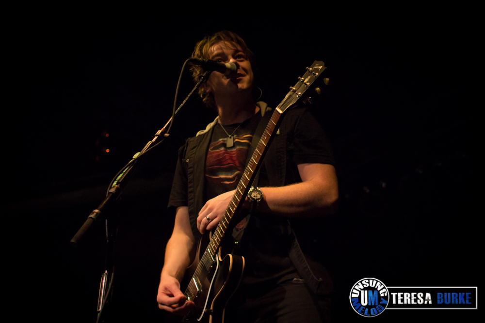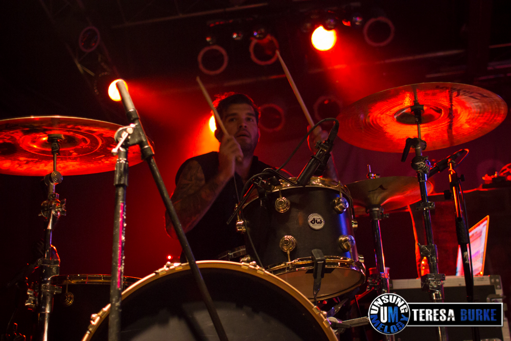 While drummer Drew Langan was positioned off to the side of the stage and not always in the best lighting, his pounding beats and intense playing was still felt. At one point he even stood on his stool eyeing the crowd. Towards the end of the night, he was quick on his feet, well, quick with his hands when there were some unexpected technical difficulties right before their last song. For some reason they lost power to the mics and instruments. Not missing a beat, Drew quickly launched into a spontaneous drum solo. At one point, Jordan sat down on the stage in front of Drew’s kit, crossed legged, and watched attentively. Once the power was restored they ended the night with the title track of their new album, Leave Your Mark, which received the biggest reaction of the night.