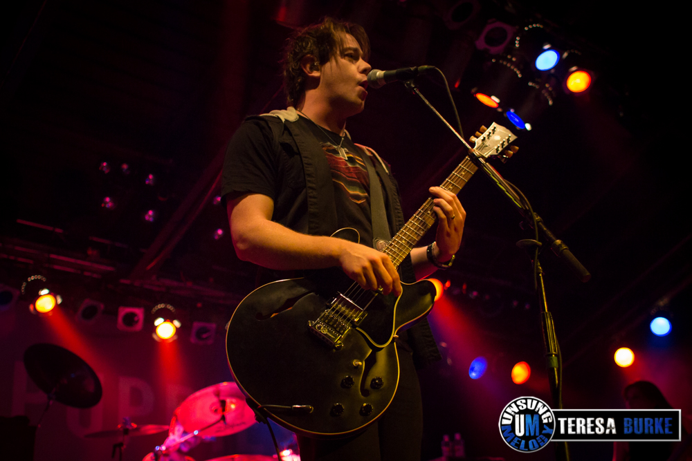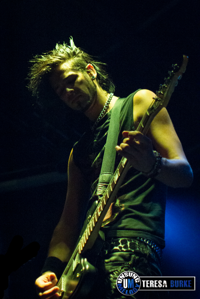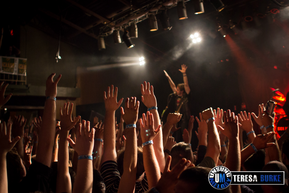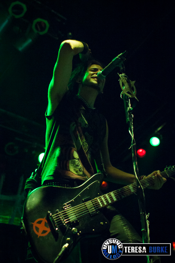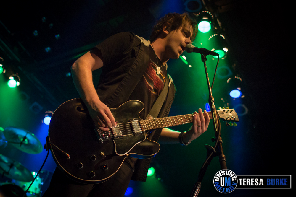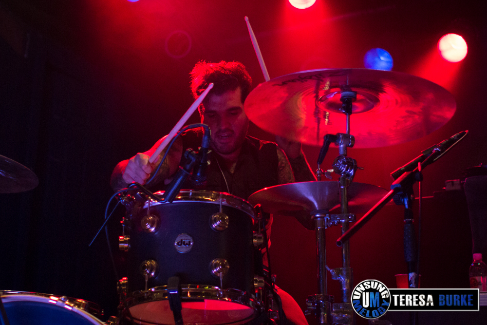 While drummer Drew Langan was positioned off to the side of the stage and not always in the best lighting, his pounding beats and intense playing was still felt. At one point he even stood on his stool eyeing the crowd. Towards the end of the night, he was quick on his feet, well, quick with his hands when there were some unexpected technical difficulties right before their last song. For some reason they lost power to the mics and instruments. Not missing a beat, Drew quickly launched into a spontaneous drum solo. At one point, Jordan sat down on the stage in front of Drew’s kit, crossed legged, and watched attentively. Once the power was restored they ended the night with the title track of their new album, Leave Your Mark, which received the biggest reaction of the night.